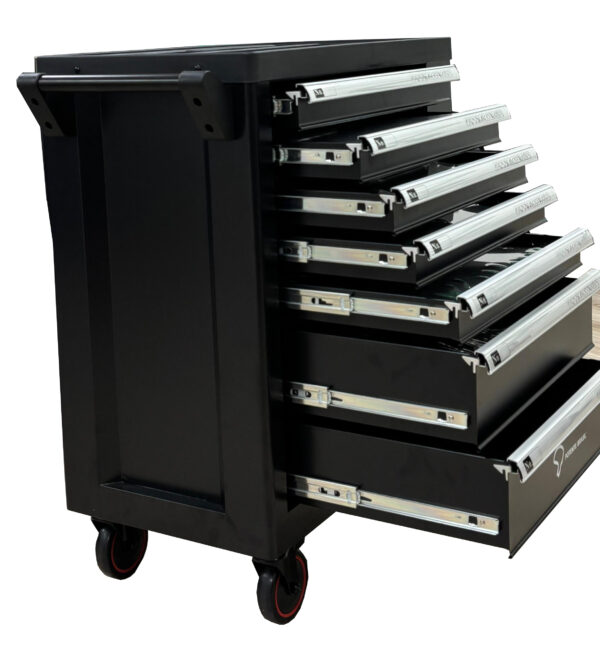 - Carrinho de ferramentas em Aço com seis gavetas espaçosas e organizadas, equipadas com sistema de auto travamento, e rodas que facilitam o transporte, este carro de ferramentas é a escolha perfeita para sua oficina mecainica, centro automotivo e serviços de reparos automotivos.